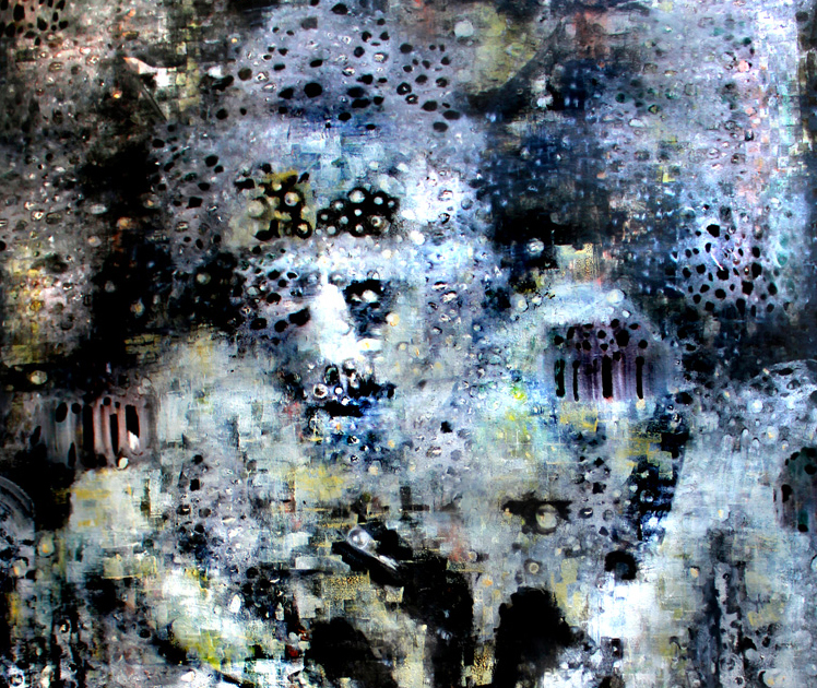 oil on canvas, napo b 2001. This painting was done entirely with prepared rollers, the thing that amazes me is the perfect glass bubble in the swan’s mouth, beautifully placed in a the random act of painting with rollers.