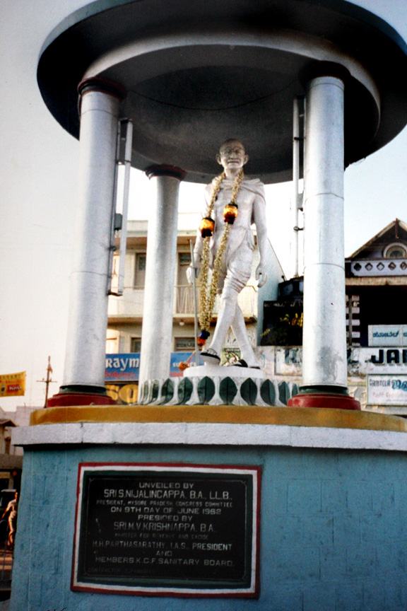 In the main square in Roberstonpet is a monument to Ghandi, it looks odd because the glasses are put on the sculture minus the lenses, rather than sculpted rims. Went into town to Roberstonpet on our Hero bicycles, everywhere astonishment that white people could ride though the country side on bicycles.