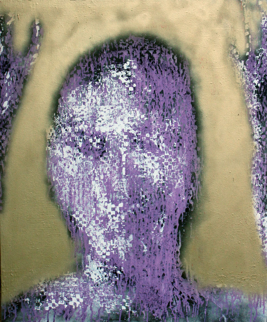 Roller painting inspired by the sight of protesters in Ferguson, Missouri. This figure appeared Hands Up in a few minutes, painting happened so fast that I had to lay it down to slow down the drips, and call it done. Inspired by the power of people marching and protesting of Ferguson, calling out against violence by law enforcement agents; this is an important conversation that must be sustained and kept up front. The use of extreme force has become all to common place, and is disproportionate in many cases to the circumstances. This paintings might appeared unfinished or a bit raw, but the conversation on this subject is unfinished and extremely raw. NB
