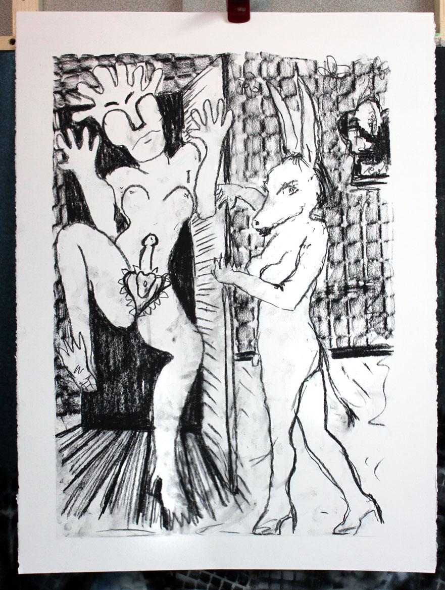 “Surprise Guest”, charcoal on paper, 31x 21 in., 2015